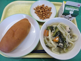 鶏ちゃんは岐阜県の奥美濃地方の郷土料理です。地域や家庭によって味付けや作り方に少し違いがありますが、しょうゆやみそをベースにしたたれに漬け込んだ鶏肉をキャベツなどと一緒に炒めて食べる料理です。今日の給食では、キャベツのほかににんじんも加えて作りました。