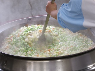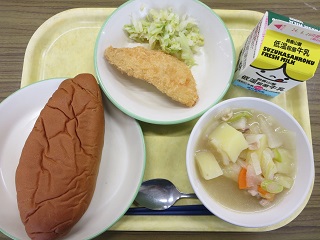 野菜のスープ煮に入っているじゃがいもは四日市産(桜地区)です。