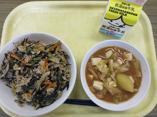 シャキシャキ鶏そぼろ丼 牛乳