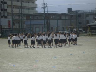明日の運動会に向けて、各学年のリハーサルを見学しました。どの学年も、それぞれ「心を一つに 全力出し切る! ときわっ子」というメッセージにぴったりの心が動かされる表現でした。