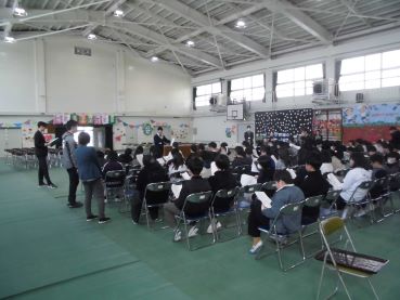 今日は、常磐中学校の先生方に来ていただき、中学校生活や部活動について説明していただきました。進学する中学校は様々ですが、少しは中学校生活についての展望が開けたのではないでしょうか。