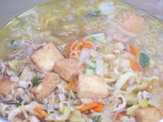 鶏肉、にんじん、玉ねぎ、白菜、白ねぎ、糸こんにゃく、厚揚げを調味料を入れてじっくり煮込みました。