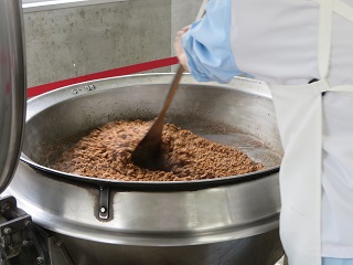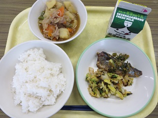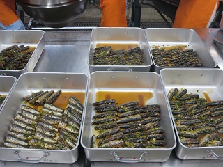 いわしのピリ辛煮は、骨をやわらかくしたいわしを使っています。丸ごと食べることができるので食べやすく、人気の給食の一つです。