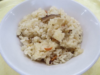 鶏肉、油揚げ、こんにゃく、ごぼう、たけのこ、にんじん、椎茸が入った味ごはんです。