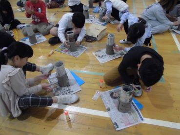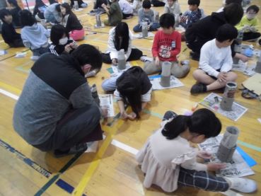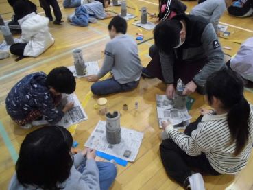 醉月陶苑さんをお招きし。3年生がランプシェードづくりを行いました。毎年、地元の万古焼に親しむ大切な体験学習の機会として企画しています。