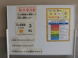 学校では、1日のうちに何度もWBGT値を計測し、31になった時点で「原則運動禁止」としています。