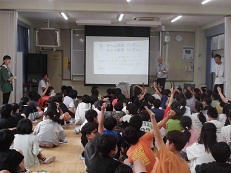四日市市青少年育成室から講師をお招きし、5・6年生を対象にネットトラブル出前講座を行いました。夏休みを前に各学級でメディアリテラシーの学習は実施したところですが、今日は特に高学年児童に対して切実な課題に絞って学びました。繰り返しになりますが、SNS上への悪口の書き込みや無断での写真の送信等、オンラインゲーム上でのトラブルは、学校生活での友だち関係にも大きな影響を与えます。 子どもたちが安全・安心に夏休みを過ごせるように、ご家庭でもご協力いただきますよう、お願いいたします。