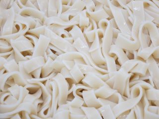 幅広の平打ち麺を使います。