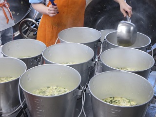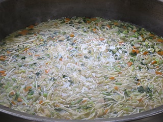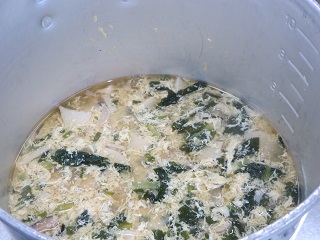 ・地物たっぷりかきたま汁・・・卵、しいたけ、エリンギ、小松菜、水耕ねぎ