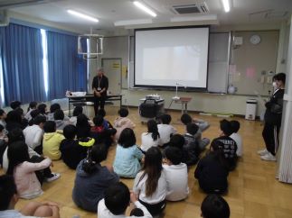 創立150周年記念事業として児童文学作家である「はやみねかおる」氏をお招きし、4年生から6年生までの子どもたちに特別授業をしていただきました。