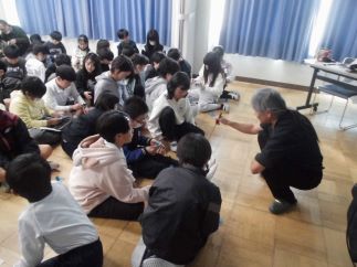 はやみね氏の書下ろし「決戦!インチキ屋」の謎解きを子どもたちとしたあとで、ハイパーカードの取組や質問コーナーを実施しました。