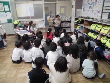 今朝は、1年生に読み聞かせをしてもらいました。子どもも担任もしっかりと読み聞かせを聞かせてもらい、読書に親しむことができました。