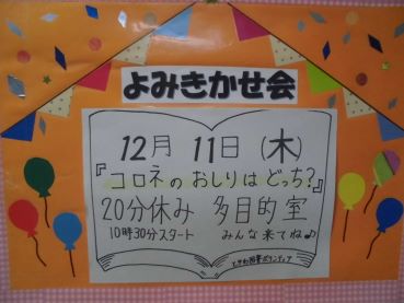 12月11日(木)には、2学期のよみきかせ会『コロネのおしりはどっち?』も計画してもらっています。精力的な活動、ありがとうございます。