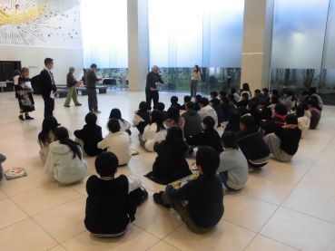 ボランティアガイドさんの戦争体験のお話や大学生の大学生活にかかわる話に熱心に耳を傾け、メモをとる子どもたちの姿がありました。