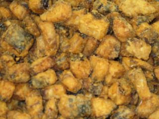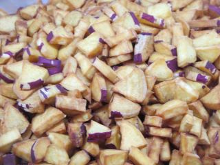 さつまいもは素揚げにします。あじは、酒、しょうゆ、しょうがに漬け込み、米粉と片栗粉をまぶして揚げます。