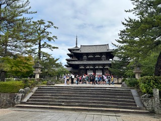 6年生が法隆寺に到着しました。すっかり雨もやみ見学者も少ない中で、ゆったり見学できそうです。