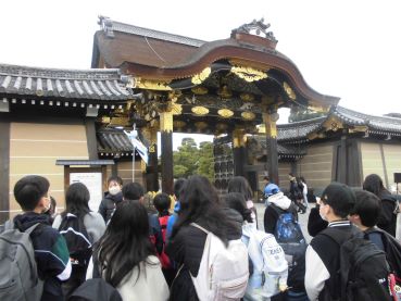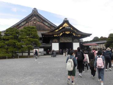 比較的混雑もなく、ゆったりと二条城の見学を終えました。唐門や襖絵をしっかり見学し、うぐいす張りも体験しました。今後の歴史学習にいかしてほしいと思います。