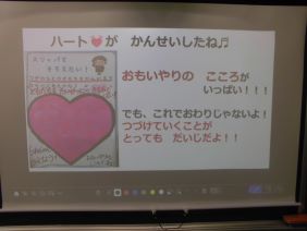 各教室にあるハートマークがシールでいっぱいになりました。担任からのメッセージにもあるように、「当たり前の生活習慣」として身につけてほしいと思います。