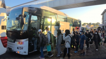 全員そろって、無事に出席しました。最高の天気になり、バスに向かう子どもたちの表情も晴れやかでした。この2日間は、見学地から配信させていただきます。