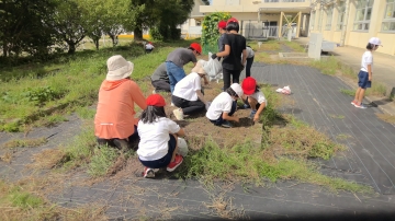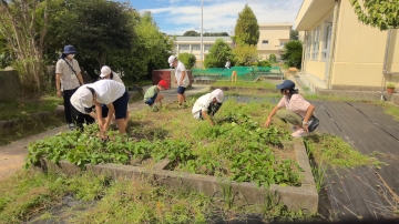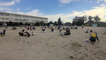 明日のピカピカ大作戦では、保護者や地域の方々に大変お世話になります。これまで子どもたちや職員が除草作業などの環境整備に努めてきましたが、すべてには手が回りません。また、学校開放団体の方々にも運動場や体育館周りの除草作業をしていただいています。下の写真は、子どもたちが運動場や学級園の草取りをする様子と運動会の練習の様子です。運動会で走ったり、ダンスしたりする部分にも草がまだまだ残っています。明日のピカピカ大作戦では、このあたりの草抜きもよろしくお願いいたします。