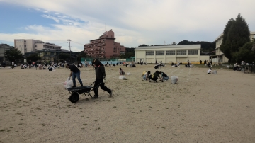 本日は保護者や地域の方などにお世話になり、運動場や学校周りの除草や側溝の清掃、なかよし山改修作業など、本当にきれいにしていただきました。みなさんのご協力のおかげで、下の写真のように300袋を超える草や側溝の土を取り除くことができました。今日参加してくれた子もいましたが、作業終了後にきれいになったなかよし山でさっそく楽しそうに遊ぶ姿が見られました。これで運動会の練習もきれいな運動場で気持ちよく行うことができます。まだまだ暑い中、ありがとうございました。
