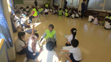 本日2年生が生活科で「見守りボランティアさんに話を聞こう」という学習を行いました。本校の見守りボランティアの方々は20名近くいらっしゃいますが、今日はその中で8名の方に来ていただき、グループに分かれていろいろな質問をさせていただきました。「どうして見守りボランティアの活動をしようと思いましたか」の質問には、「子どもたちの安全を守るため」と答えていただくなど、みなさんが同じ思いであることがわかりました。最後の挨拶では、何人もの子たちが、感謝の気持ちを自分の言葉で伝えていました。今後も子どもたちの安全のために、よろしくお願いいたします。