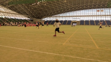 本日、四日市ドームで三泗小中学校特別支援学級連合運動会が行われました。泊山小学校からもふたば学級の子たちが参加し、開会式でのラジオ体操のあと、30m走、80m走、大玉ころがし、かりもの競争、網をくぐったりゴムひもをジャンプしたりして走る競技、玉入れに出場しました。それぞれの子が自分の持つ力を精一杯発揮して頑張っていました。