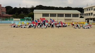 今日も運動会の練習が行われました。高学年の様子をお伝えします。色とりどりの旗を持ちながら、大きく表現していました。一人技などの練習や場所の移動や動きの確認などしながら、運動場での練習を進めていました。運動会当日が今からとても楽しみです。
