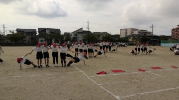 先週から運動会の練習が少しずつ始まっています。どの学年も一生懸命に頑張っていて、表現運動やダンスの動きがどんどんじょうずになっています。はじめは先生の動きを見て、それを実際にやってみて、できた達成感を味わいながら練習しています。表現運動やダンスの練習も少しずつステップアップすることで「できた」「もう少しやりたい」という意欲を大切にしています。下の写真は順に低学年、高学年の演技の一部です。子どもたちは運動会で家の人に見てもらうのを楽しみにしているようなので、家でも話を聞いてあげてください。