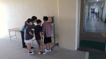 今日も暑い日になりましたので、熱中症対策もしながら体育館などで運動会の練習をしています。下の写真は、保健委員会の子たちが運動場への通路で熱中症指数を記録したり、運動会のライン係の子たちが朝ラインを引いたり、児童招集係の子たちが休み時間にワークスペースでプラカードを作成したりする様子です。係の仕事なども一生懸命に頑張ってくれています。
