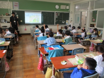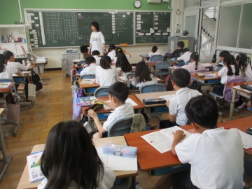 今日は雨が降ったりやんだりのはっきりしない天気ですが、20分休みは運動場で元気に遊ぶことができました。また休み時間が終わったらチャイムの合図で、さっと教室に入って授業の準備ができていました。