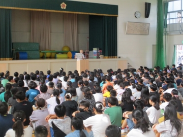 2学期始業式とその後の学級指導で一生懸命に話を聞く様子