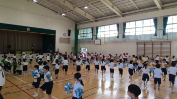 今日は、低学年の様子をお伝えします。今週から飾りを持って踊っています。5限目はWBGTの指数が高かったので、体育館で練習しました。踊る場所の確認をしながら、体を大きく動かして元気よく踊っていました。明日は、全体練習がありますので、水分を忘れずに持たせていただければと思います。