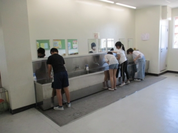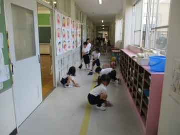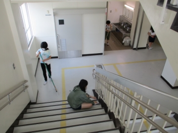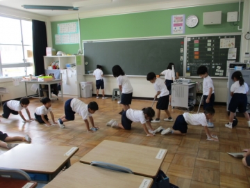 本日配付の「泊山っ子だより」(ホームページのメニューからはカラーで見ていただけます)にも紹介しましたが、掃除は時間いっぱい、黙って、一生懸命に頑張っています。決められた仕事が早く終わった時には、廊下のすみにたまったほこりをとったり、手洗い場の汚れている所を見つけてこすったり、便器のふたの汚れをふいたり、時間いっぱい頑張ばる姿が見みられます。