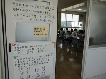 下の写真は順に今日の5年生と6年生の算数の授業の様子です。どちらの学年も習熟度別少人数授業を行っています。どのグループも意欲的に学習に取り組めていて「わかる」「できる」「もう少しやりたい」を大切にした課題設定がなされていました。また、少人数教室の入り口には、今学習している算数の大切なポイントが掲示されており、「わかる授業」のための工夫があります。