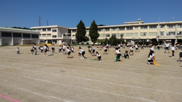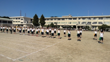 今日は、1限目に全体練習がありました。今年のスローガンについての話があり、全校で力を合わせて頑張っていくことを確かめました。そして、開会式や閉会式の流れを確認しながら練習をしました。来週に迫ってきた運動会に向けて、しっかりと取り組むことができていました。