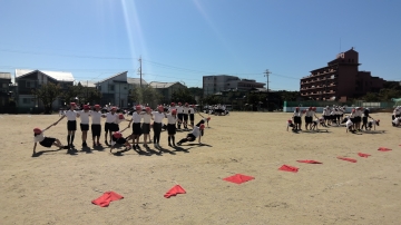 今日は、低学年の様子をお伝えします。今週から飾りを持って踊っています。5限目はWBGTの指数が高かったので、体育館で練習しました。踊る場所の確認をしながら、体を大きく動かして元気よく踊っていました。明日は、全体練習がありますので、水分を忘れずに持たせていただければと思います。
