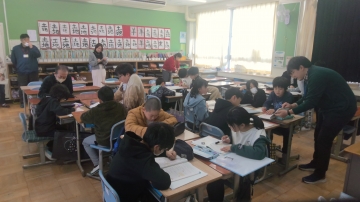 本日、本年度4回目の「コミュニティースクール運営協議会」を行いました。この会は学校教育活動の充実のために、学校と保護者や地域住民が協働して「学校づくりビジョン」の実現を図ることを目的としています。各クラスの授業の様子を見ていただき、その後にいろいろなご意見をいただきました。委員のみなさんからは、「どのクラスも授業が大変落ち着いてできて、学びに向かう姿勢が大変よかった」「授業のめあてがよく工夫されていて、わかりやすい」「算数の少人数授業など、いつも一人もとりのこさない丁寧な授業ができているなどのご意見をいただきました。いただいたご意見を全職員や教育委員会と共有して、よりよい学校づくりをめざしていきます。