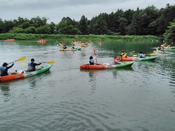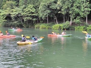 後半のカヤック体験も予定通りできました。前後のペアで右、左と声をかけながら協力して早く進めるようになりました。曲がり方、止まり方もできるになり、最後には簡単なレースも楽しめるようになりました。