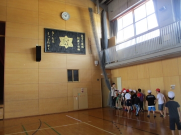 本日、3年生が総合の学習で校区探検に行きました。旧東海道の道沿いのお店や町並みを見た後、追分鳥居やあすなろう鉄道の追分駅、駅近くの市場などを見学して、最後は南中学校に寄らせていただきました。自分たちの校区にはいろいろな歴史的な建物やお店などがあることを再発見していました。南中学校では体育館通路の日陰で休憩して、体育館の中にも入れていただき、その大きさに驚いていました。最後に元気にお礼を言って、中学校の教頭先生に見送ってもらいました。