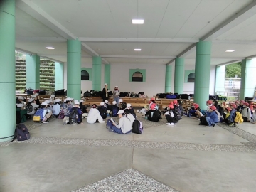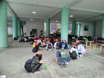 無事に自然の家に到着して、ウォークラリーに出発しました。天気も曇り空で順調です。
