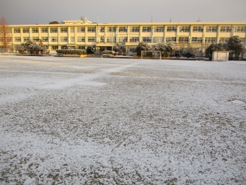 学校の積雪は3センチ程度ですので通常通り授業を行います。朝から職員で昇降口前や校門前の坂の除雪を行いましたが、滑りやすくなっているので気をつけて登校してください。
