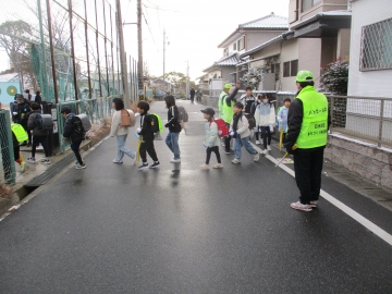 今朝はうっすら雪が積もる中、たくさんの保護者や見守りボランティアの方々が登校に付き添っていただき、子どもたちは安全に登校できました。いつもありがとうございます。