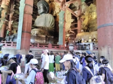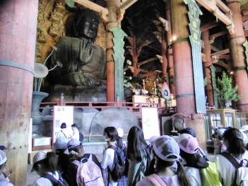 大仏殿では、その大きさにびっくりの「大きい!」の声が出ていました。素直な驚きの声でいいなあと思いました。実行委員や先生の大切な話を聞いて、班別分散学習に出発しました。