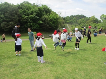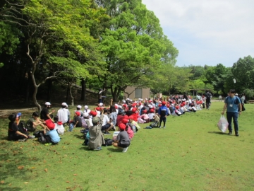 今日は絶好の遠足日和となりました。朝早くからお弁当の準備など、ありがとうございました。1年生と6年生はまず南部丘陵公園の南ゾーンまで行って、しばらく遊んでから北ゾーンに移動してお弁当を食べました。