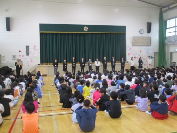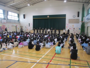 着任式と始業式では、新2年生から新6年生し新しい学年となり、一生懸命に話を聞く姿が見られました。校長からは「笑顔と優しさのあふれる学校」にするために、2つの大切にすることの話をしました。2つとも新1年生のよき見本となってくれることを期待しています。