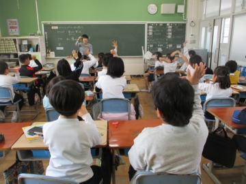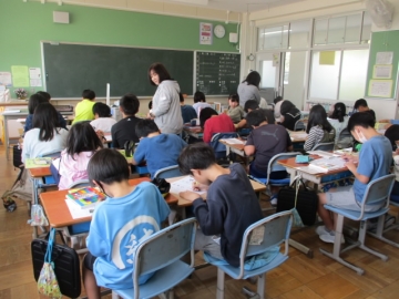 下の写真は4年生から6年生の各クラスの様子です。高学年では、専科の先生や隣のクラス担任が理科や英語、音楽や図工などの授業を行う「教科担任制授業」や複数の先生で授業を行う「ティームティーチング」の授業も始まっていますが、どの先生の授業でも一生懸命に学習できていました。