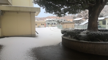 学校の積雪は5センチ程度ですので通常通り授業を行います。朝から職員で昇降口前や校門前の坂の除雪を行いましたが、滑りやすくなっているので気をつけて登校してください。