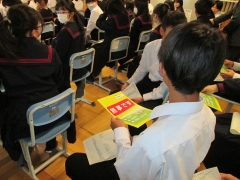 期末テスト後ではありましたが、熱心に聞き入る生徒の様子がみられました。11月30日(日)にひかえる、防災学ぶDayに向けて有意義な時間を過ごすことができました。