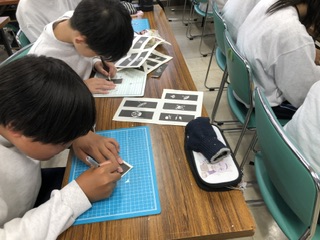 ノコギリの次は、デザインカッターを使って伊勢型紙のしおり作りに挑戦しました。6種類のデザイン画から好みの柄をえらび、丁寧に切り抜いていきます。切り抜いたらラミネートをして、穴を開け、紐を通して完成!朝の読書で使えますね。